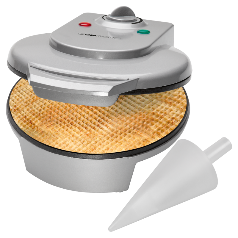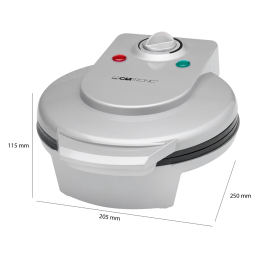Vahvliküpsetaja Clatronic HA3494 valmistab suured külgevõtmatute Ø 18 cm küpsetusplaatidega maitsvaid õhukesi vahvleid.